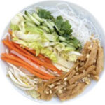 Vermicelli noodle with vegan egg rolls, vegan bean curb, shred lettuce, beansprouts, cilantro, pickled carrot & daikon, peanut and vegan sauce.